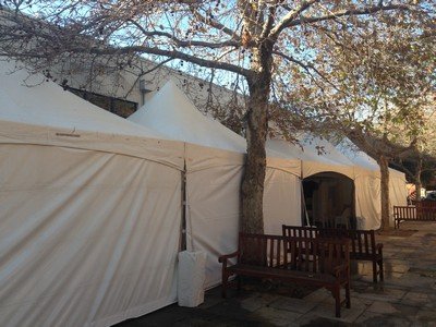 4.5mx4.5m Marquees can be joined together to create a longer space, gutters are usd to prevent water entering the marquee.